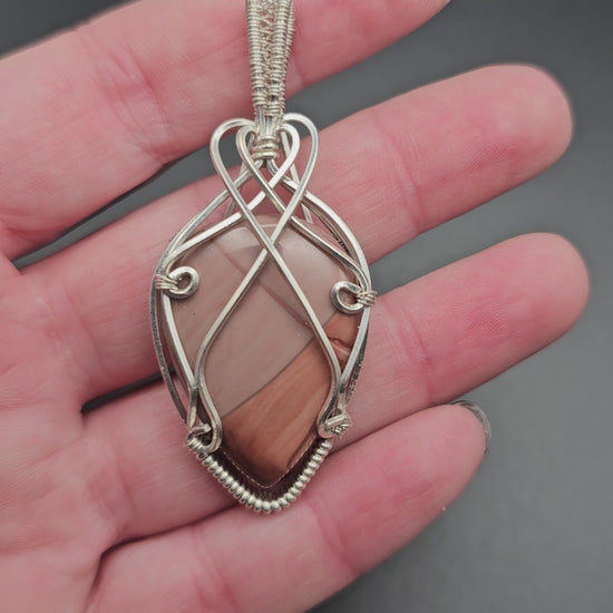 Mookaite Jasper cabachon, wrapped in Sterling Silver. Chain sold separately.