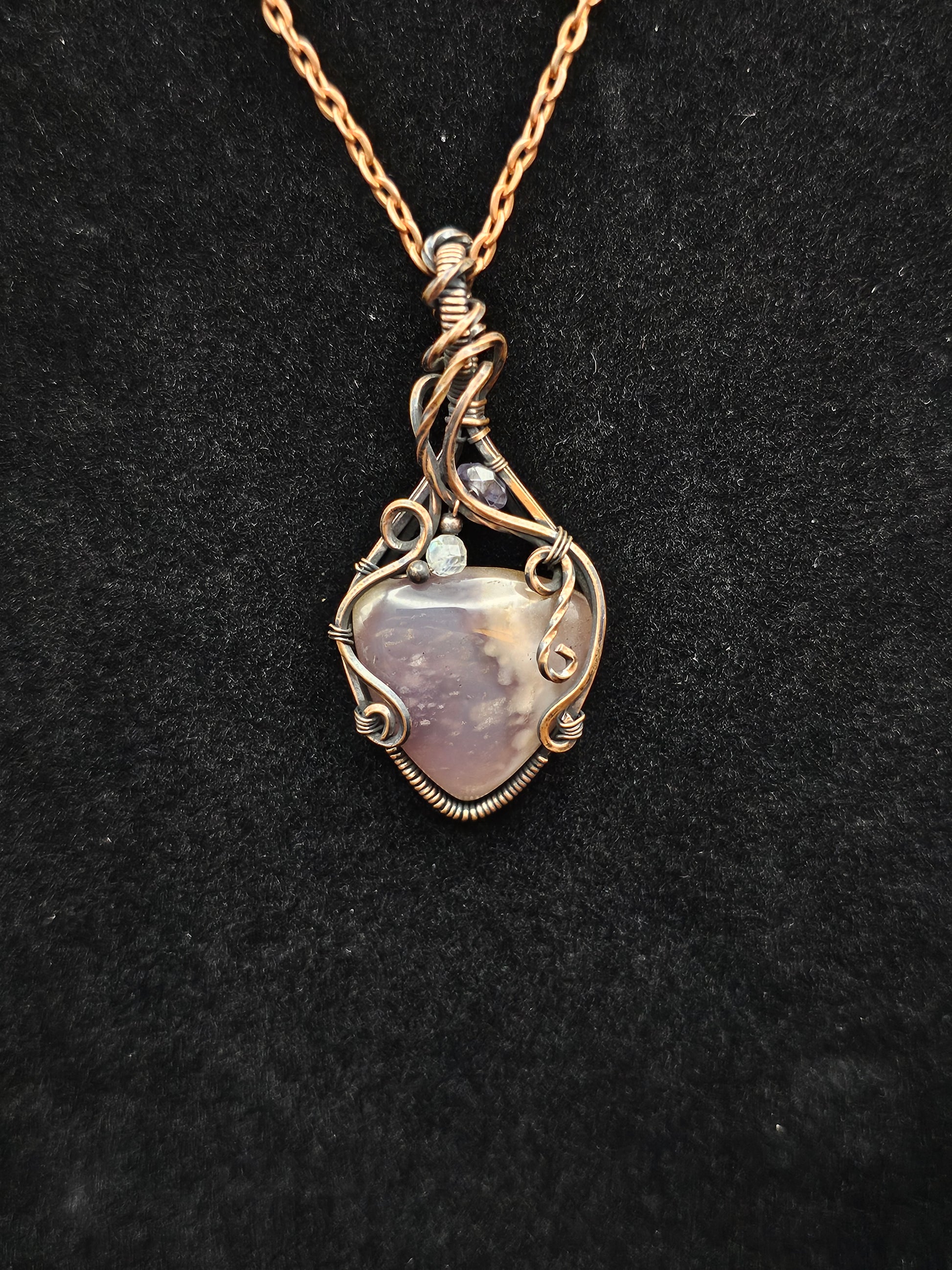 This translucent beauty is made with Purple Cloud Agate and accented with Iolite and Moonstone beads.